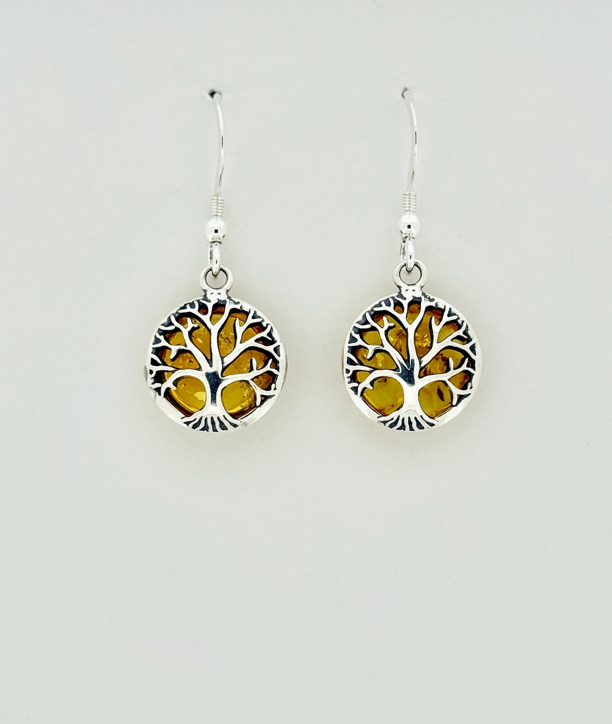 From our carefully curated collection. Set in .925 sterling silver and hanging 33mm long and 14mm wide, this charming accessory utilizes one of warm yellow hues found in Baltic amber. This soothing color splendidly accents the intricate tree of life design of this setting, creating a subtle and gentle yet noticeable complement for a range of outfits.