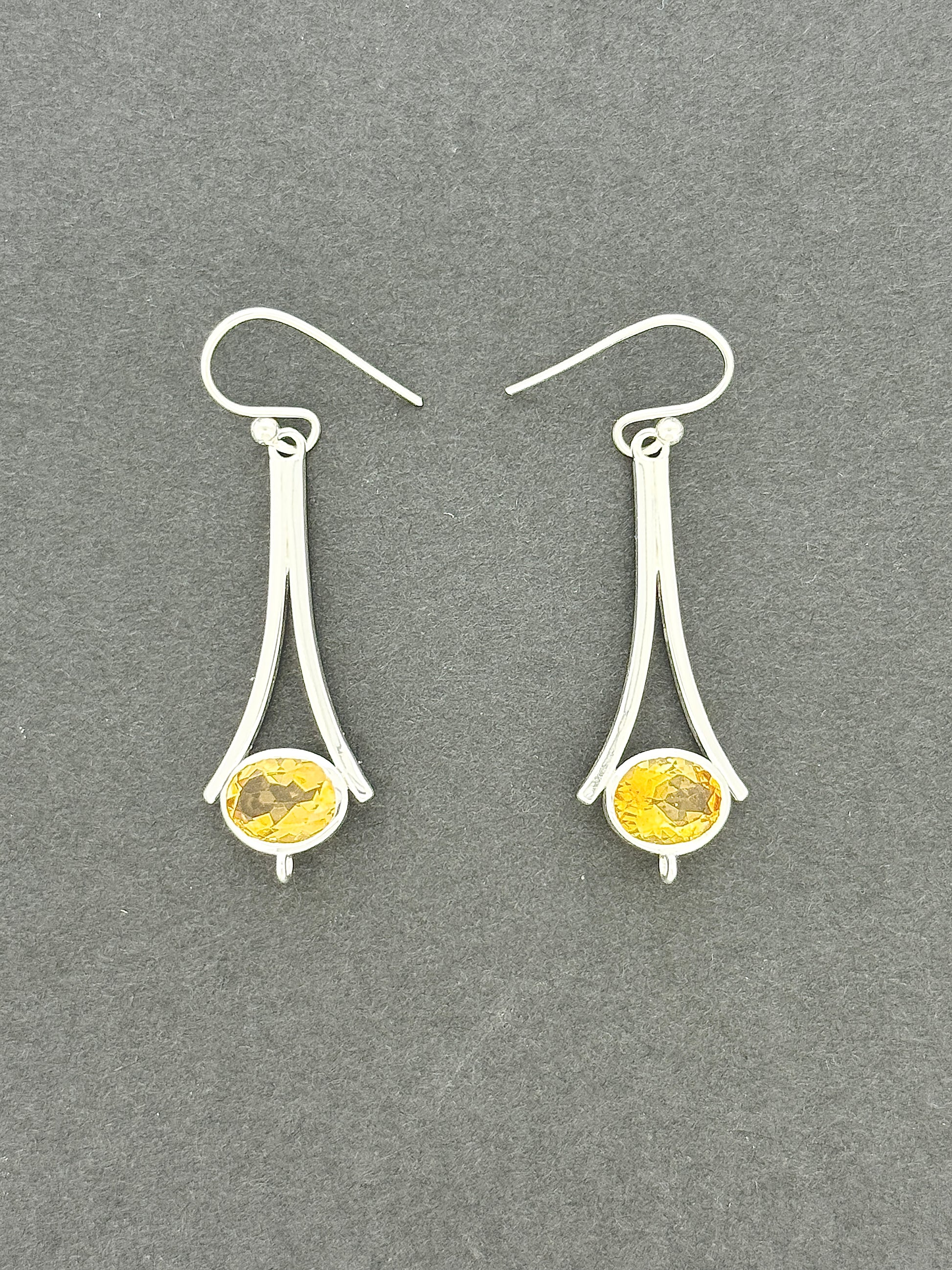 From our carefully curated collection. Hanging 47mm long and 14mm wide, this .925 sterling silver accessory combines noticeable length with simple style, excellently displaying the bright citrine gems in a smoothly curved setting reminiscent of a bell. The faces of these stones have been skillfully cut, causing them to sparkle in the light, shining like yellow suns.