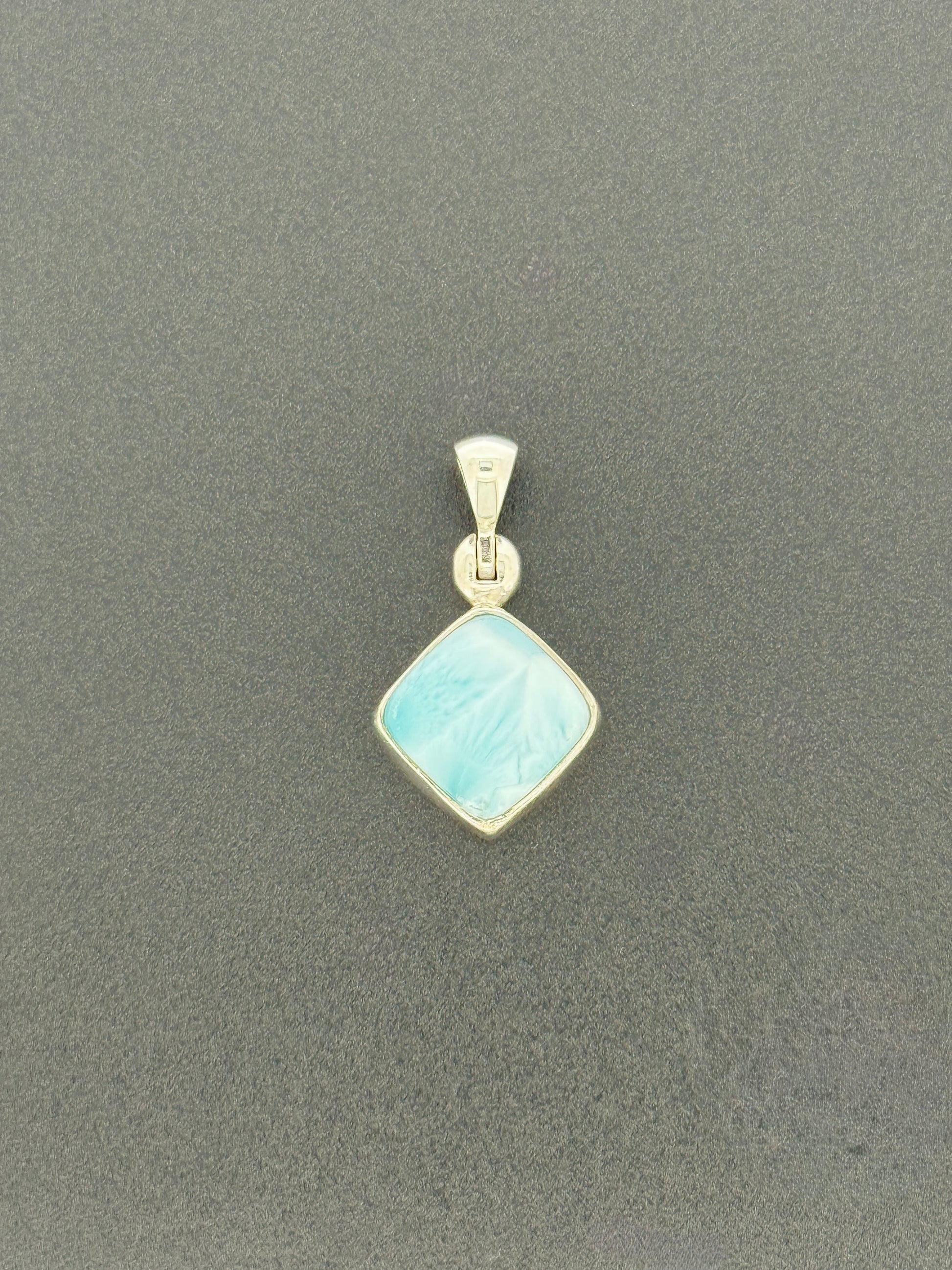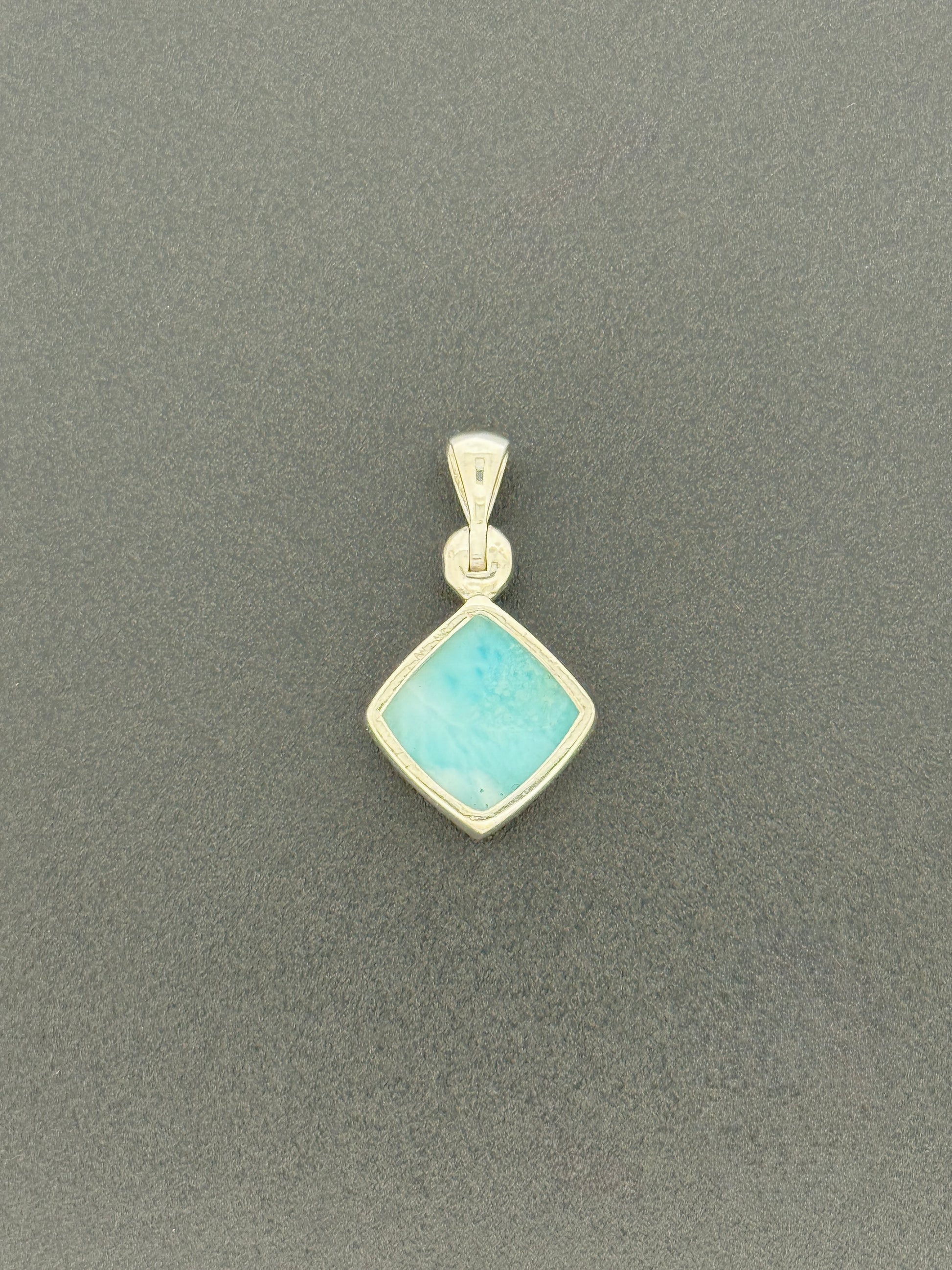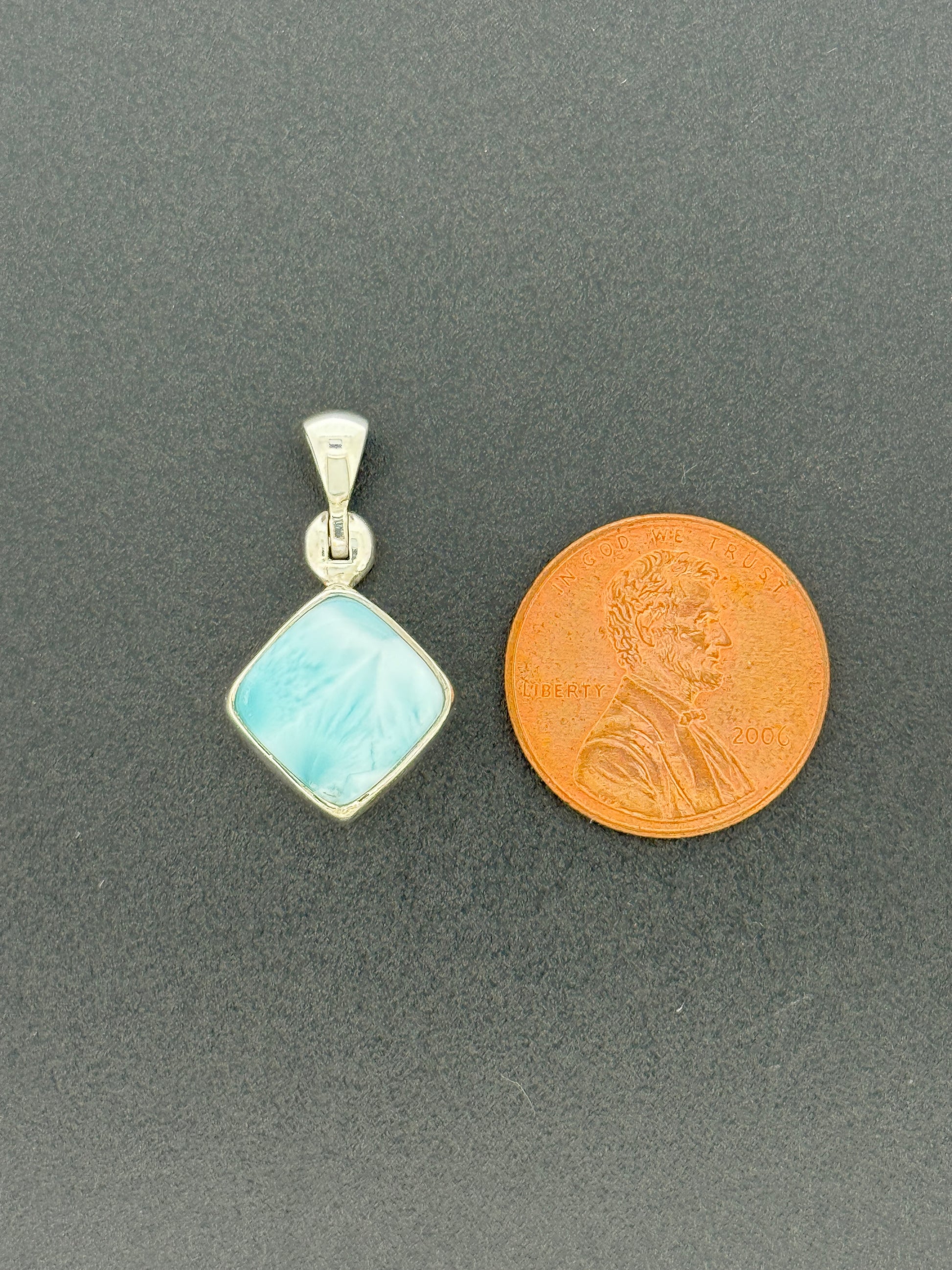 From our carefully curated collection. Set in .925 sterling silver, this dainty piece excellently displays the soft pattern of light-to-deep blue accented by subtle, white veins for which this gemstone is famed. The petite size of this pendant adds to its charm, as it presents a small but endearing addition to a range of outfits. 24mm x 14mm.