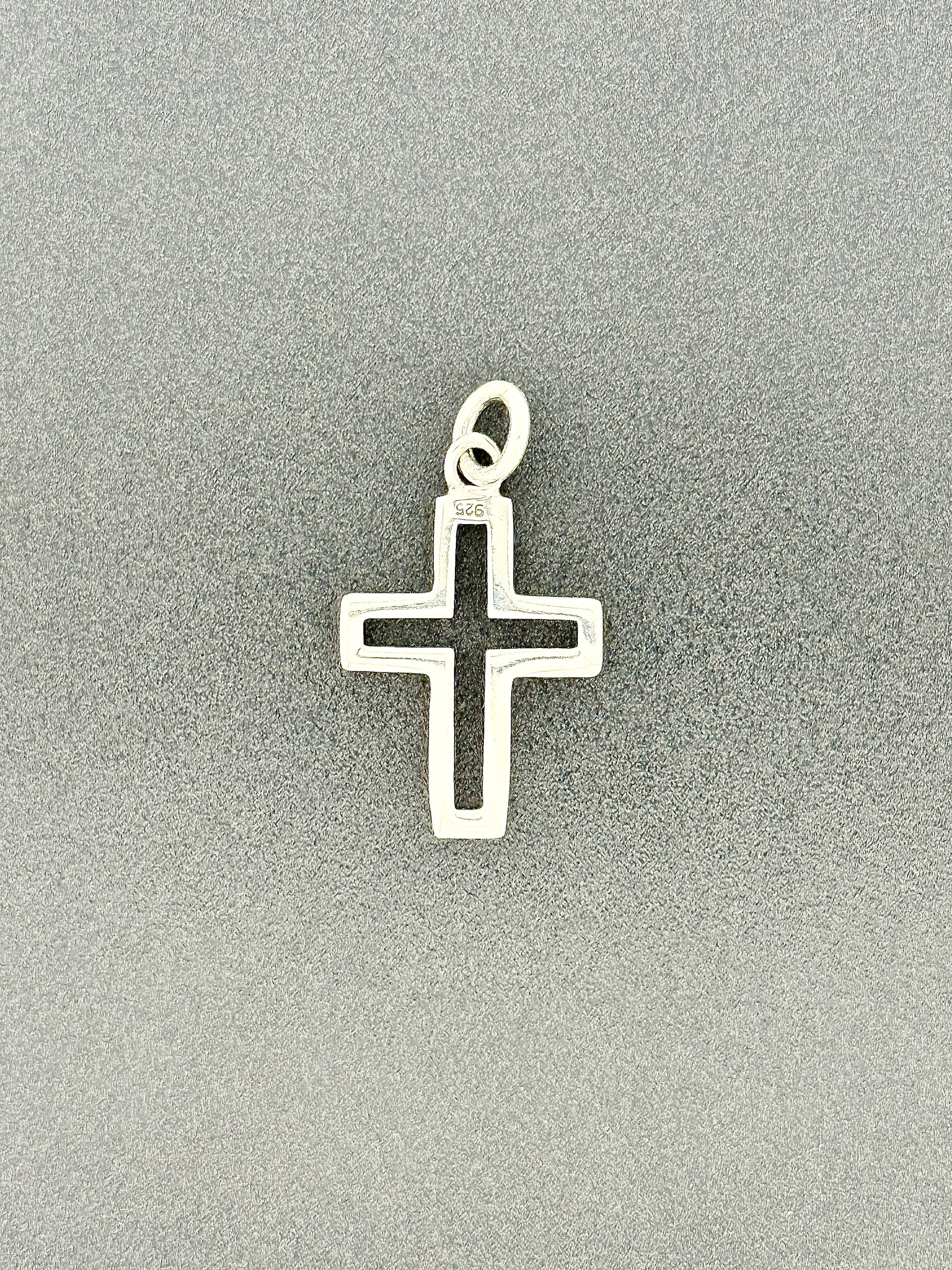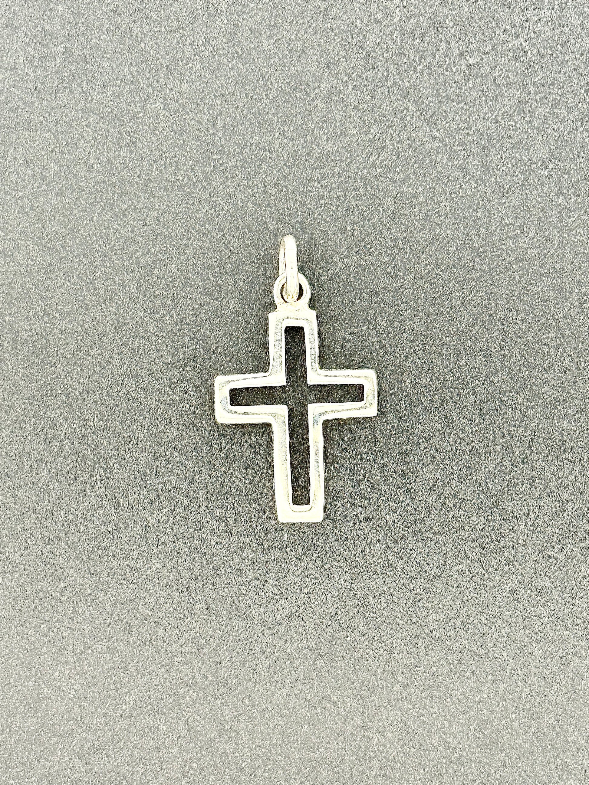 From our carefully curated collection. This lovely .925 sterling silver pendant is beautiful in the simplicity with which it represents the Christian faith. The cross-shaped cutout in the interior of this piece provides it with a pleasant contrast while preserving the lightweight efficiency of this design. The petite size of this pendant makes it an excellent and delicate complement for any outfit. 28mm x 16mm.