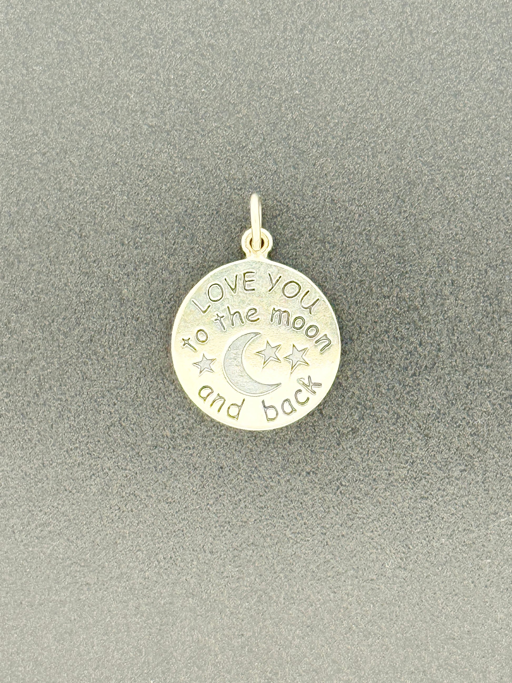 From our carefully curated collection. This petite pendant features a simple design and a simple message showcasing a tender affection for someone dearly beloved. The dainty size and endearing thought of this piece make it an excellent gift for someone very special. 21mm x 15mm.